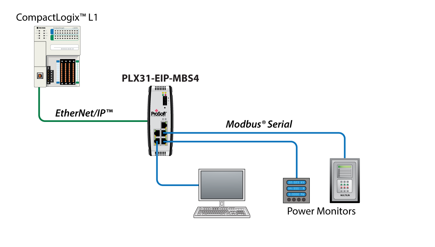 Prosoft PLX31-EIP-MBS4 _ EtherNet/IP to Modbus Serial 4 Port